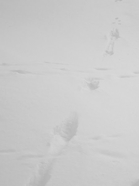 leaving a muddy choppy trail in the snow all the way up to a generous pile of scats.